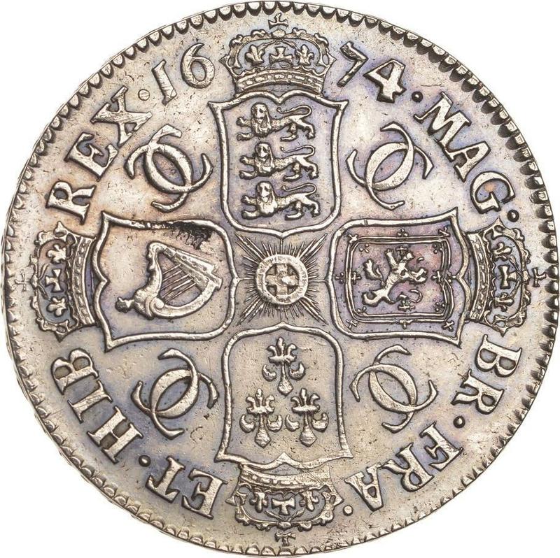 Find out the current coin value of the British Halfcrown 1674 "Fourth laureate bust". This silver coin from the times of Charles II. Wondering how much a coin like this is worth? The record price belongs to the lot 30265 sold at the Heritage Auctions auction for USD 13,200. Bidding took place August 17, 2018.