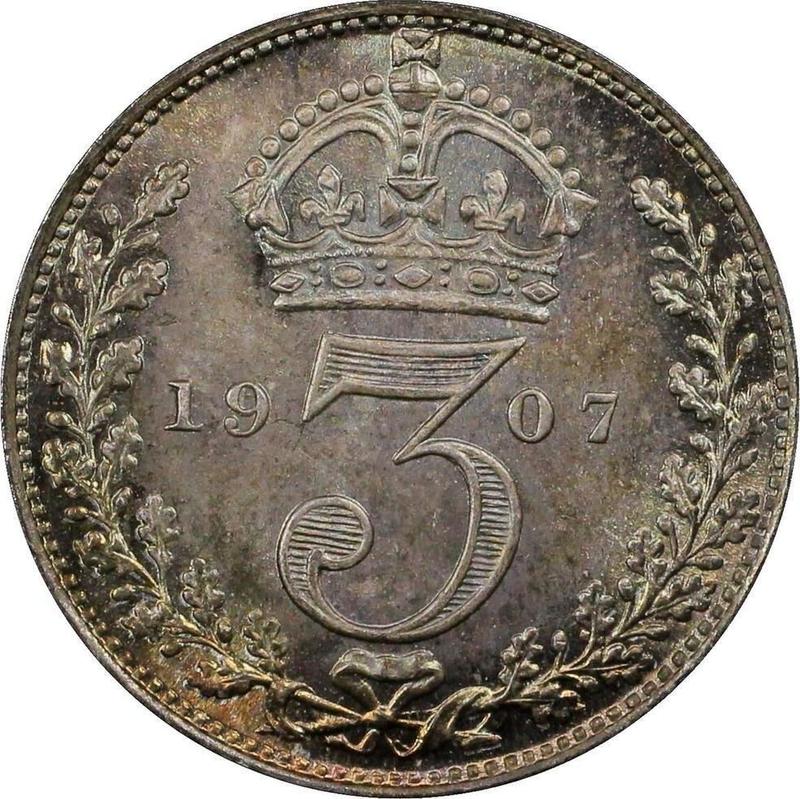 Find out the current coin value of the British Threepence 1907 . This silver coin from the times of Edward VII. Wondering how much a coin like this is worth? The record price belongs to the lot 1069 sold at the Galleria Auctions Tokyo auction for JPY 50,000. Bidding took place September 7, 2024.