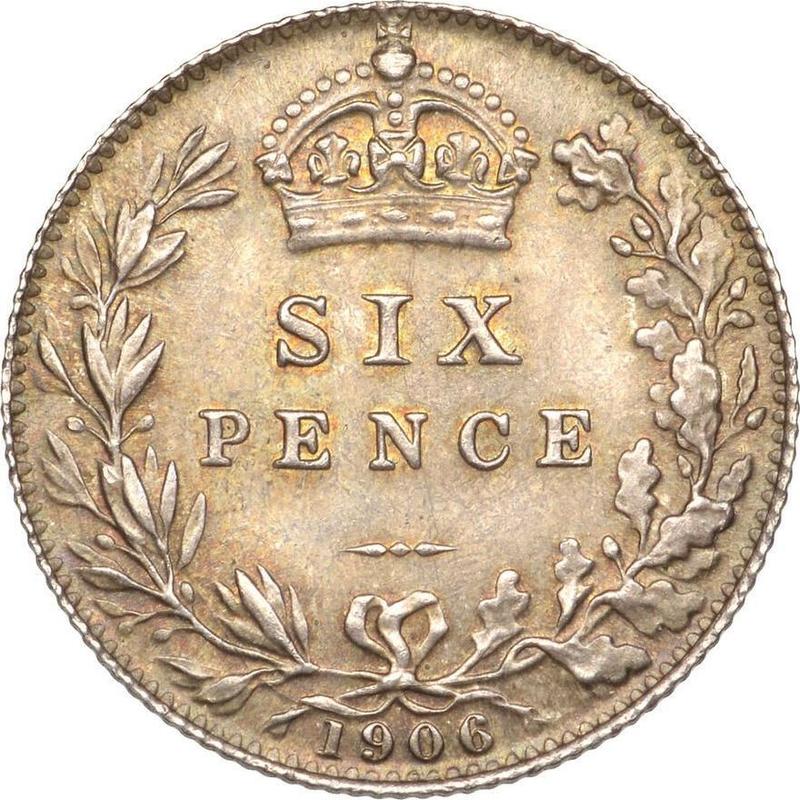 Find out the current coin value of the British Sixpence 1906 . This silver coin from the times of Edward VII. Wondering how much a coin like this is worth? The record price belongs to the lot 3219 sold at the Ira & Larry Goldberg Coins & Collectibles, Inc. auction for USD 288. Bidding took place May 30, 2005.