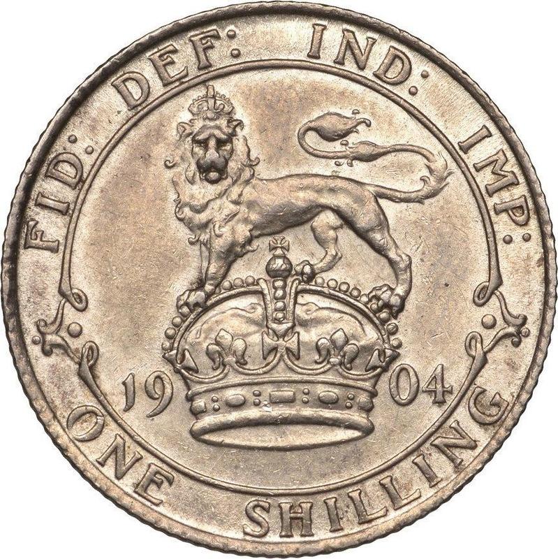 Find out the current coin value of the British Shilling 1904 . This silver coin from the times of Edward VII. Wondering how much a coin like this is worth? The record price belongs to the lot 33139 sold at the Heritage Auctions auction for USD 1,920. Bidding took place April 20, 2018.