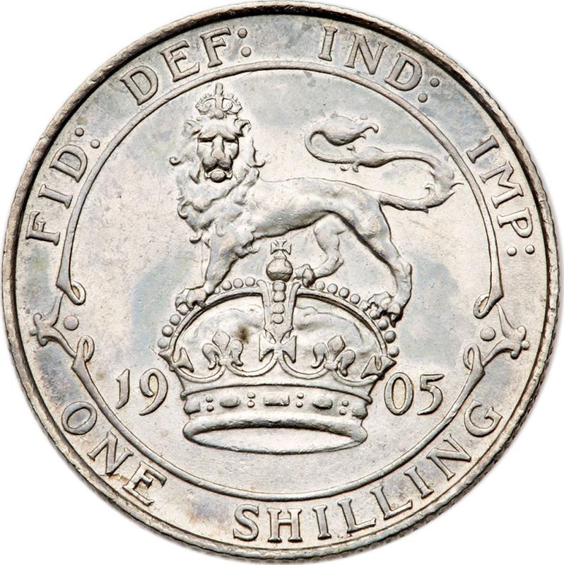 Find out the current coin value of the British Shilling 1905 . This silver coin from the times of Edward VII. Wondering how much a coin like this is worth? The record price belongs to the lot 2295 sold at the London Coins LTD auction for GBP 4,400. Bidding took place December 1, 2013.