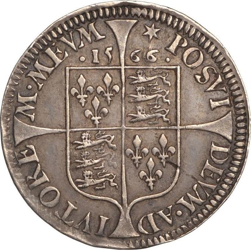 Sixpence 1566 "Milled coinage". Adorned dress (United Kingdom, Elizabeth I)