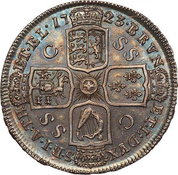 Find out the current coin value of the British Halfcrown 1723 . "SS" and "C" in angles. This silver coin from the times of George I. Wondering how much a coin like this is worth? The record price belongs to the lot 78 sold at the Classical Numismatic Group, LLC auction for USD 11,000. Bidding took place October 13, 2021.