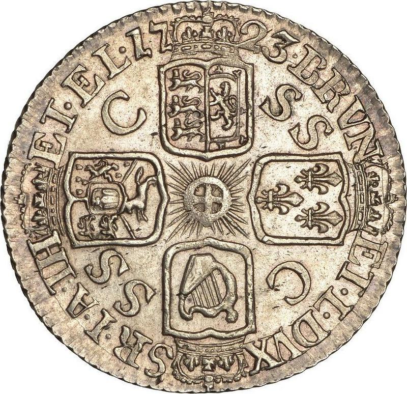 Sixpence 1723. "SS" and "C" in angles (United Kingdom, George I)