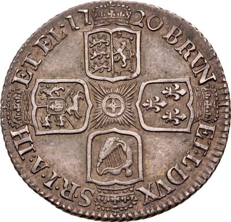 Shilling 1720 "First draped bust". Angles plain (United Kingdom, George I)