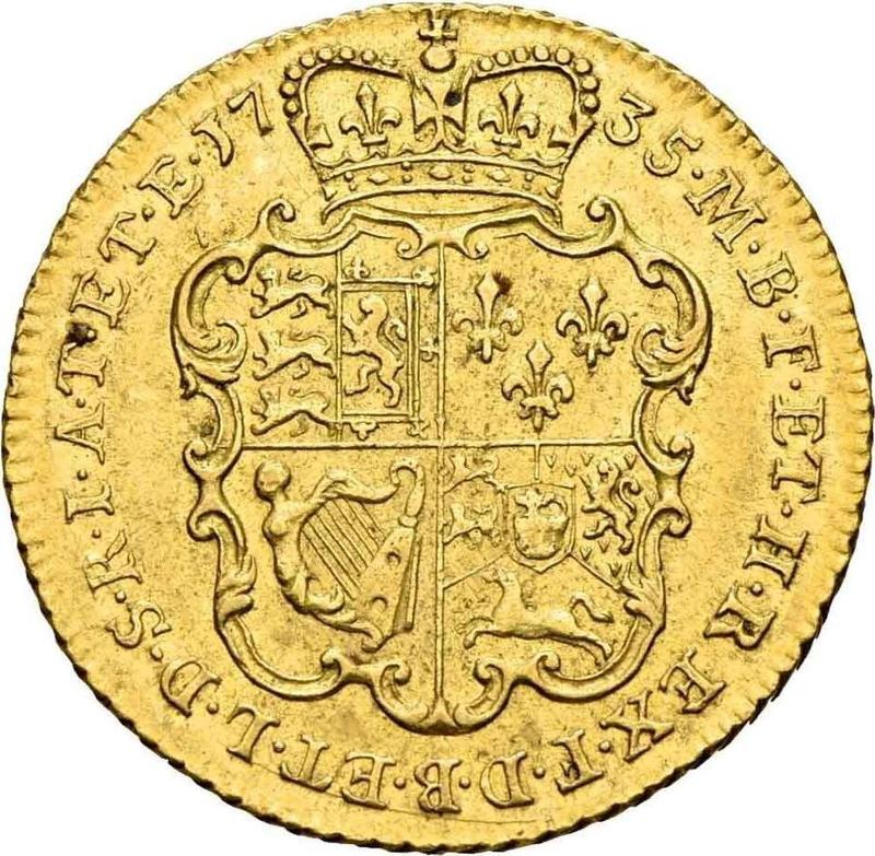 Find out the current coin value of the British Guinea 1735 "Young Head". This gold coin from the times of George II. Wondering how much a coin like this is worth? The record price belongs to the lot 21147 sold at the Heritage Auctions auction for USD 7,200. Bidding took place February 18, 2024.