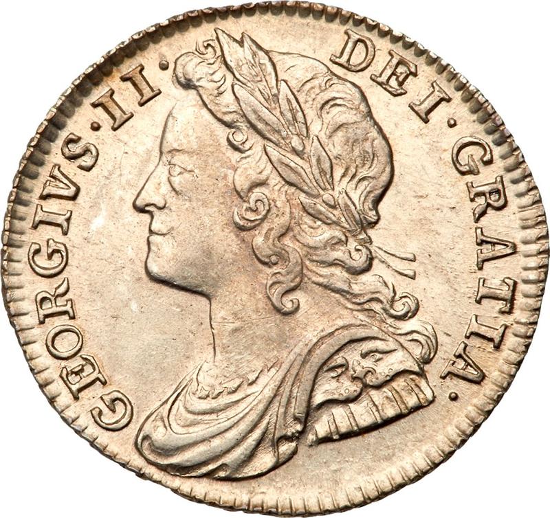 Find out the current coin value of the British Sixpence 1741 "Young Head". This silver coin from the times of George II. Wondering how much a coin like this is worth? The record price belongs to the lot 32983 sold at the Heritage Auctions auction for USD 750. Bidding took place April 25, 2019.