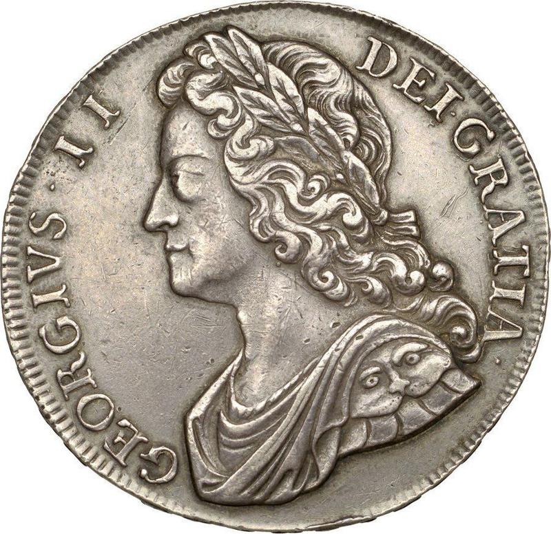 Find out the current coin value of the British Crown 1741 "Young Head". This silver coin from the times of George II. Wondering how much a coin like this is worth? The record price belongs to the lot 30797 sold at the Heritage Auctions auction for USD 16,450. Bidding took place September 3, 2014.