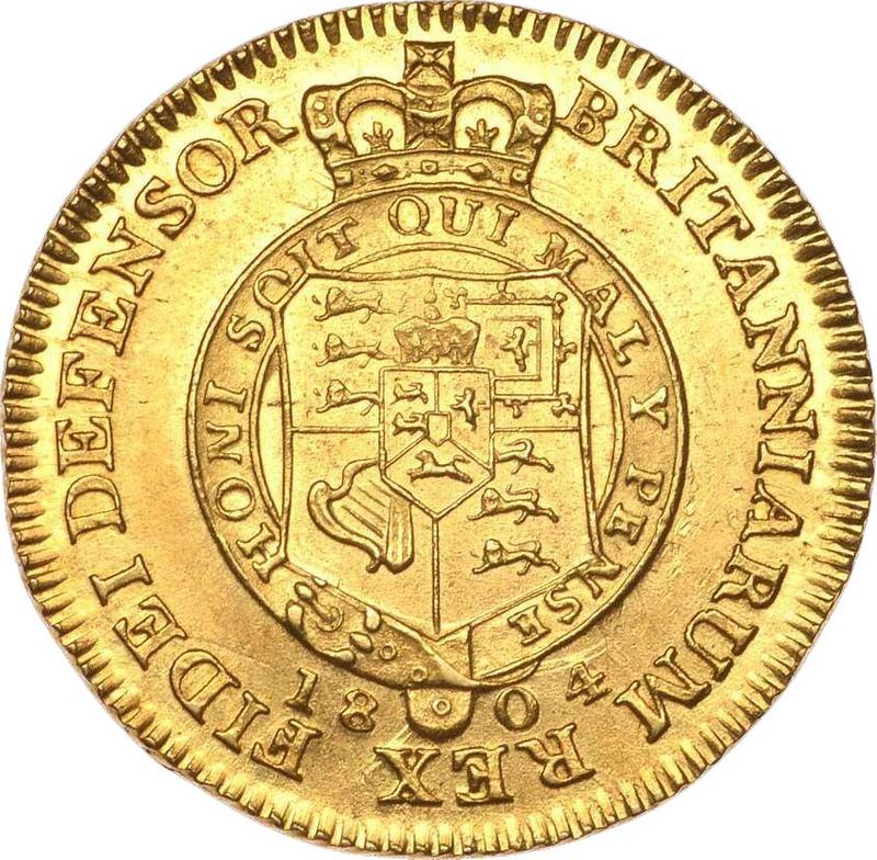 Find out the current coin value of the British Half Guinea 1804 "Garter". This gold coin from the times of George III. Wondering how much a coin like this is worth? The record price belongs to the lot 13603 sold at the Heritage Auctions auction for USD 2,760. Bidding took place January 8, 2006.