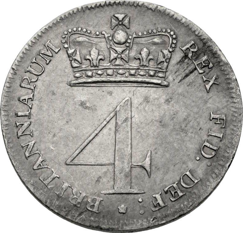 According to the latest data as of December 6, 2025 the average price of a Silver coin Fourpence (Groat) 1817 is 80 USD.