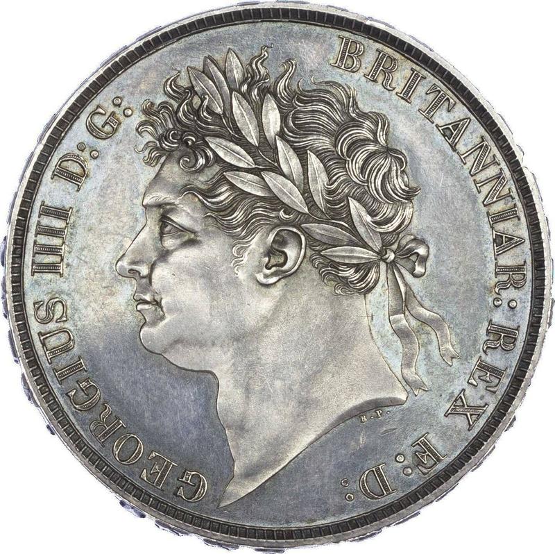 Find out the current coin value of the British Crown 1821 with mark BP. TERTIO. This silver coin from the times of George IV struck at the The Royal mint Mint. Wondering how much a coin like this is worth? The record price belongs to the lot 726 sold at the Nihon Coin Auction auction for JPY 1,700,000. Bidding took place December 10, 2017.