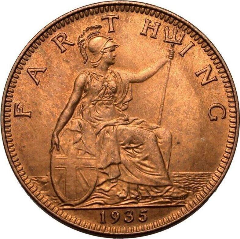 Find out the current coin value of the British Farthing 1935 . This bronze coin from the times of George V. Wondering how much a coin like this is worth? The record price belongs to the lot 227 sold at the St James’s Auctions auction for USD 1,650. Bidding took place January 15, 2025.