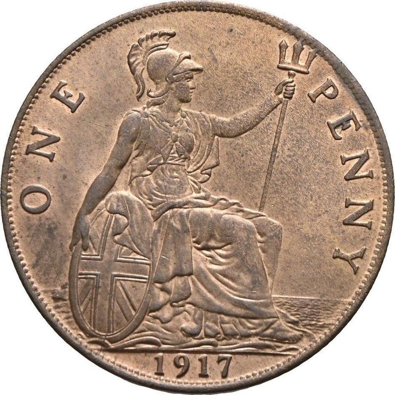 Find out the current coin value of the British Penny 1917 . This bronze coin from the times of George V. Wondering how much a coin like this is worth? The record price belongs to the lot 39263 sold at the Heritage Auctions auction for USD 204. Bidding took place July 29, 2018.