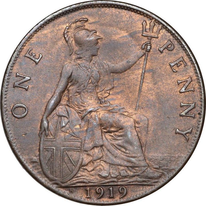 Find out the current coin value of the British Penny 1919 with mark H. This bronze coin from the times of George V struck at the Birmingham Mint. Wondering how much a coin like this is worth? The record price belongs to the lot 33153 sold at the Heritage Auctions auction for USD 1,200. Bidding took place April 20, 2018.
