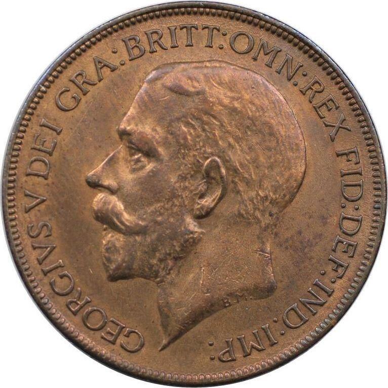 Find out the current coin value of the British Penny 1922 . This bronze coin from the times of George V. Wondering how much a coin like this is worth? The record price belongs to the lot 189 sold at the Sovereign Rarities Ltd auction for GBP 13,000. Bidding took place November 19, 2024.