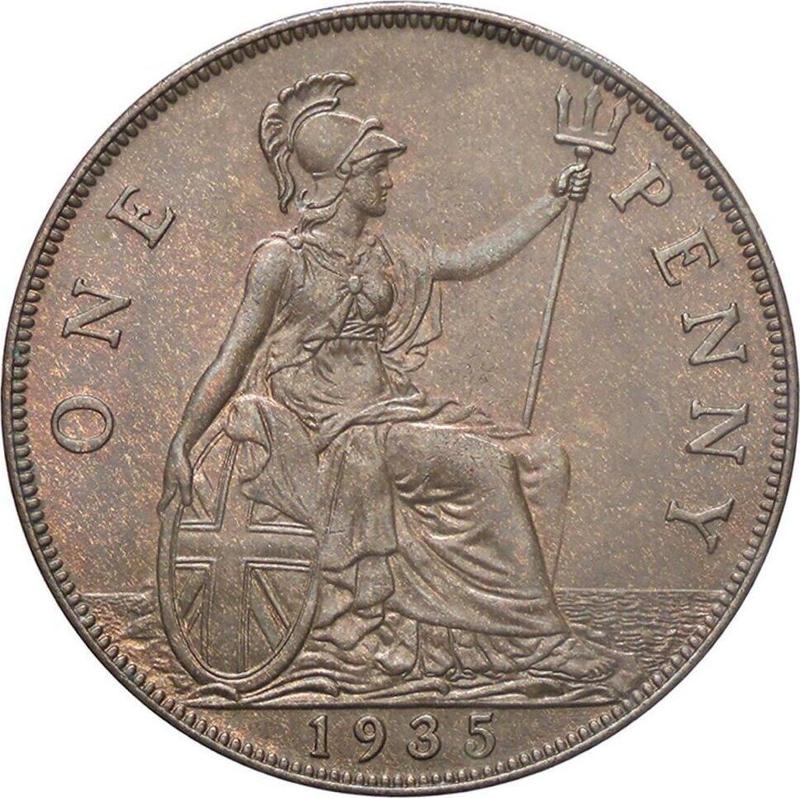 Find out the current coin value of the British Penny 1935 . This bronze coin from the times of George V. Wondering how much a coin like this is worth? The record price belongs to the lot 437 sold at the Baldwin's of St. James's auction for GBP 1,150. Bidding took place April 19, 2012.