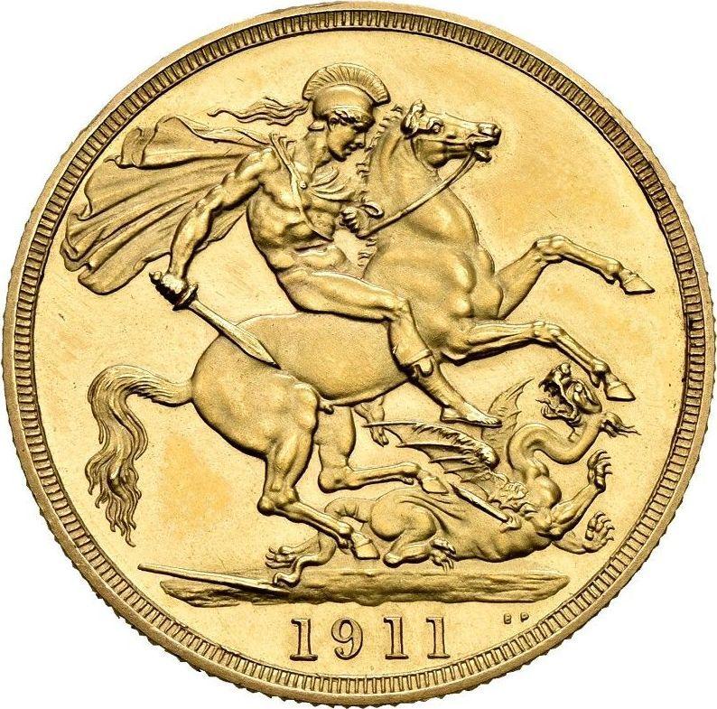 Find out the current coin value of the British Two pounds 1911 with mark BM. This gold coin from the times of George V. Wondering how much a coin like this is worth? The record price belongs to the lot 2844 sold at the Fritz Rudolf Künker GmbH & Co. KG auction for EUR 13,000. Bidding took place September 30, 2020.
