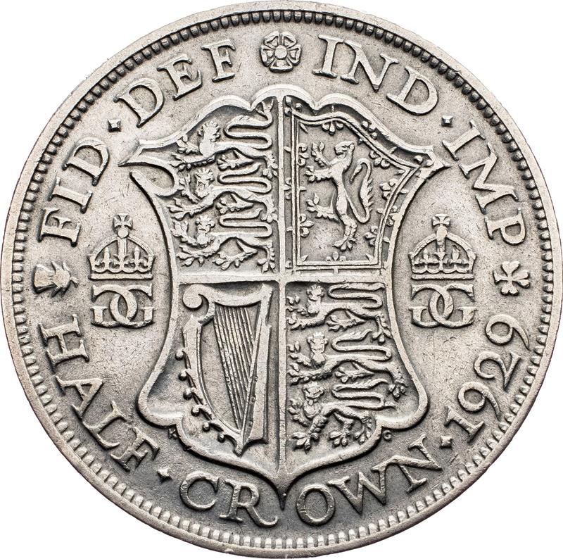 Find out the current coin value of the British Halfcrown 1929 . This silver coin from the times of George V. Wondering how much a coin like this is worth? The record price belongs to the lot 64267 sold at the Heritage Auctions auction for USD 312. Bidding took place May 23, 2019.