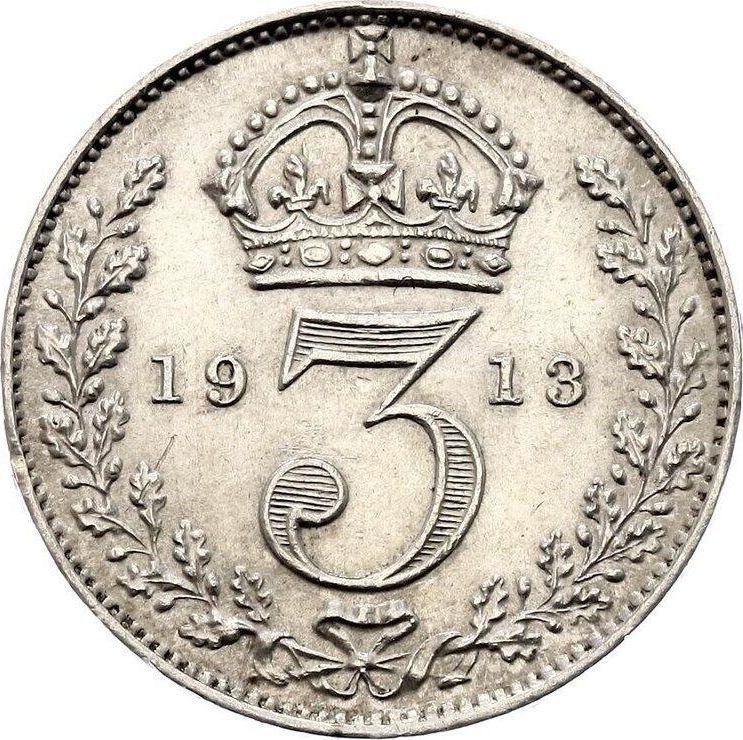 Find out the current coin value of the British Threepence 1913 . This silver coin from the times of George V. Wondering how much a coin like this is worth? The record price belongs to the lot 3925 sold at the Noble Numismatics Pty Ltd auction for AUD 260. Bidding took place August 30, 2021.