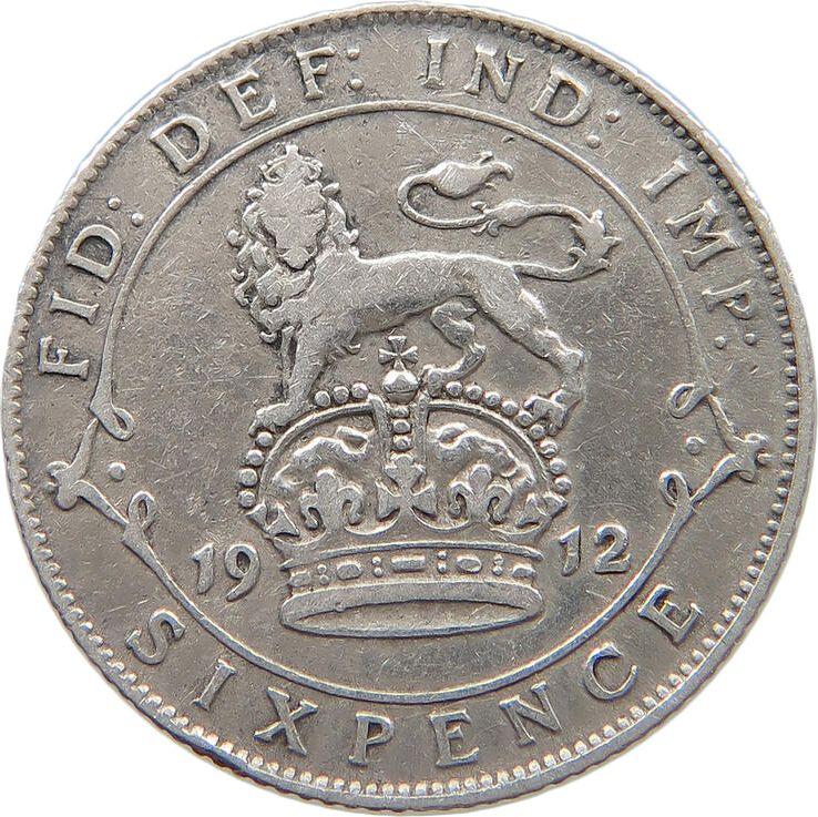 Find out the current coin value of the British Sixpence 1912 . This silver coin from the times of George V. Wondering how much a coin like this is worth? The record price belongs to the lot 62540 sold at the Heritage Auctions auction for USD 1,500. Bidding took place December 7, 2022.