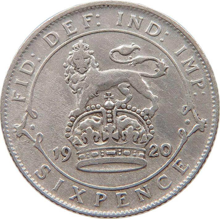 Find out the current coin value of the British Sixpence 1920 . This silver coin from the times of George V. Wondering how much a coin like this is worth? The record price belongs to the lot 3455 sold at the London Coins LTD auction for GBP 260. Bidding took place September 6, 2014.