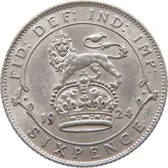 Find out the current coin value of the British Sixpence 1924 . This silver coin from the times of George V. Wondering how much a coin like this is worth? The record price belongs to the lot 32255 sold at the Heritage Auctions auction for USD 44,063. Bidding took place August 13, 2015.