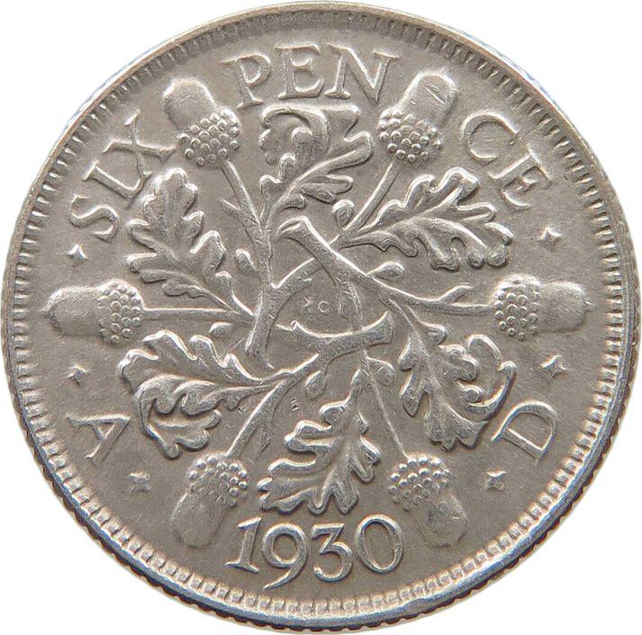 Find out the current coin value of the British Sixpence 1930 . This silver coin from the times of George V. Wondering how much a coin like this is worth? The record price belongs to the lot 36189 sold at the Heritage Auctions auction for USD 188. Bidding took place February 28, 2016.