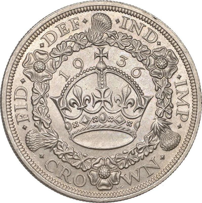 Find out the current coin value of the British Crown 1936 . This silver coin from the times of George V. Wondering how much a coin like this is worth? The record price belongs to the lot 32331 sold at the Heritage Auctions auction for USD 7,638. Bidding took place August 11, 2016.