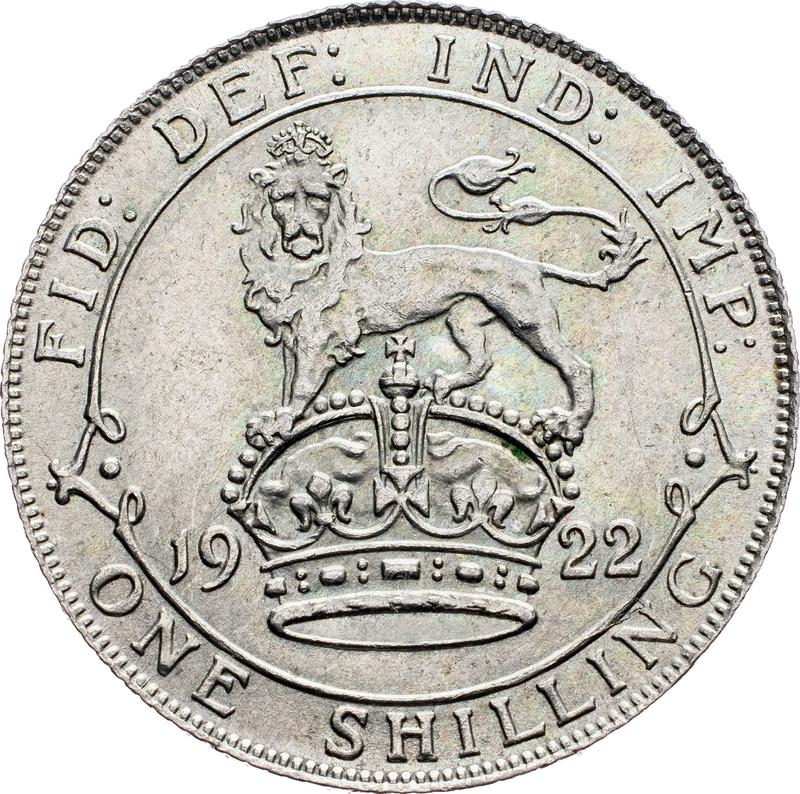 Find out the current coin value of the British Shilling 1922 . This silver coin from the times of George V. Wondering how much a coin like this is worth? The record price belongs to the lot 2593 sold at the Dix Noonan Webb auction for GBP 400. Bidding took place October 9, 2019.