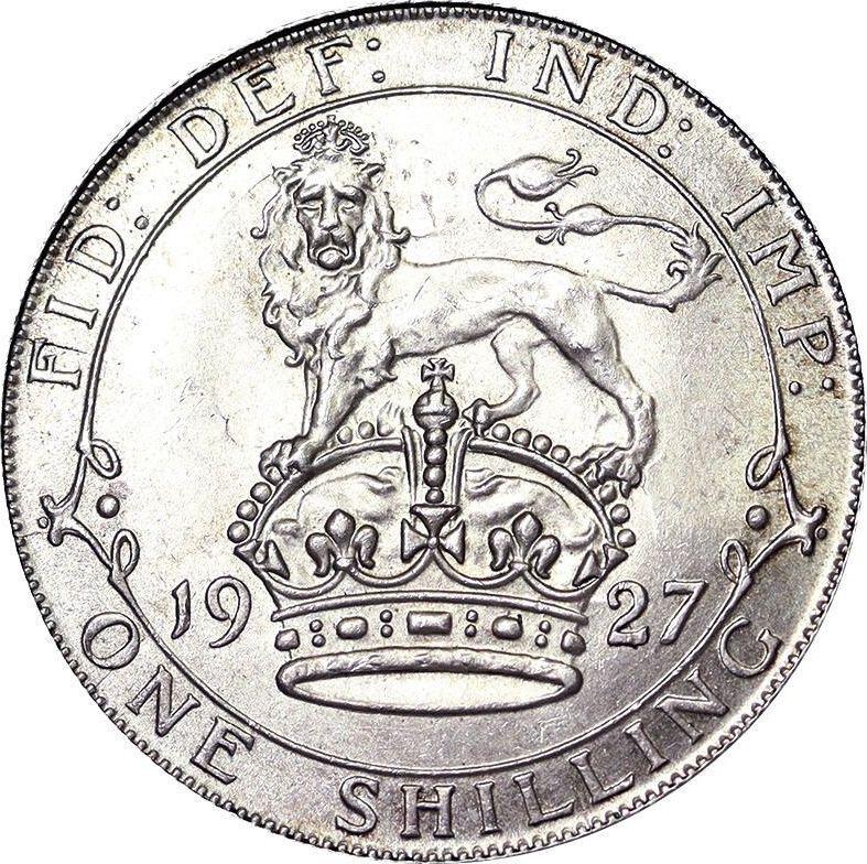 Find out the current coin value of the British Shilling 1927 . This silver coin from the times of George V. Wondering how much a coin like this is worth? The record price belongs to the lot 21184 sold at the Heritage Auctions auction for USD 552. Bidding took place March 10, 2025.