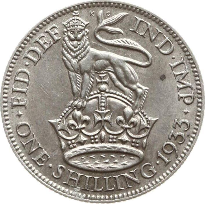Find out the current coin value of the British Shilling 1933 . This silver coin from the times of George V. Wondering how much a coin like this is worth? The record price belongs to the lot 30867 sold at the Heritage Auctions auction for USD 1,800. Bidding took place January 12, 2020.