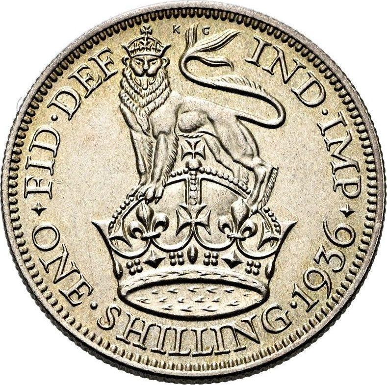 Find out the current coin value of the British Shilling 1936 . This silver coin from the times of George V. Wondering how much a coin like this is worth? The record price belongs to the lot 30878 sold at the Heritage Auctions auction for USD 1,998. Bidding took place April 7, 2017.