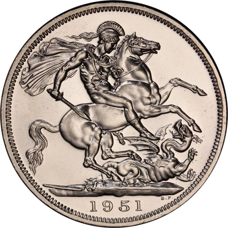 Find out the current coin value of the British Crown 1951 with mark HP. This copper-nickel coin from the times of George VI. Wondering how much a coin like this is worth? The record price belongs to the lot 4865 sold at the Ira & Larry Goldberg Coins & Collectibles, Inc. auction for USD 20,125. Bidding took place May 27, 2012.
