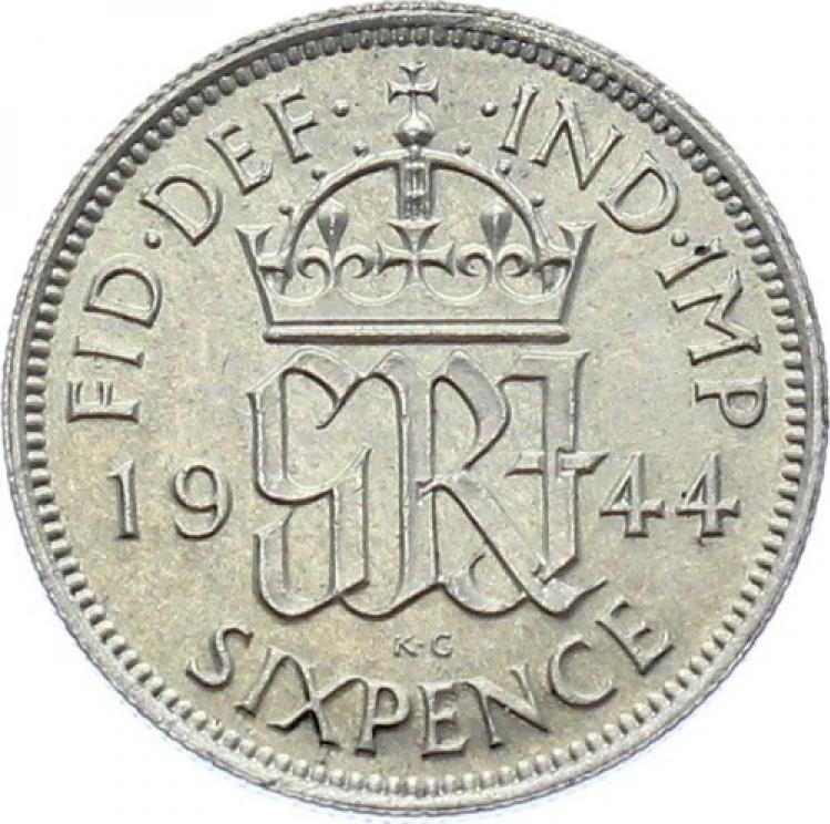 Find out the current coin value of the British Sixpence 1944 . This silver coin from the times of George VI. Wondering how much a coin like this is worth? The record price belongs to the lot 219 sold at the The Coin Cabinet auction for GBP 95. Bidding took place February 25, 2025.