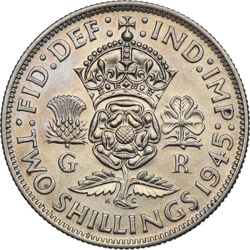 The information on the current value of the British coin Florin 1945 with the letters HP is based on actual auction sales of similar specimens. To reflect the current price level, our service monitors over 590 numismatic companies and records auction results in the coin catalog and auction archive. Please note that the exact value depends directly on the coin's condition, so the average price serves only as an approximate estimate.