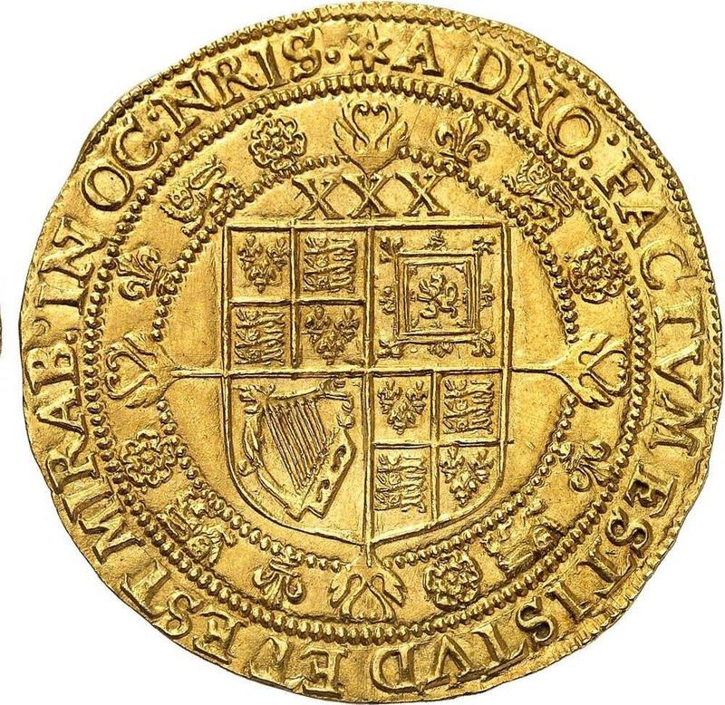 How much is the gold coin of James I Rose Ryal no date (1619-1625) "Third coinage"?