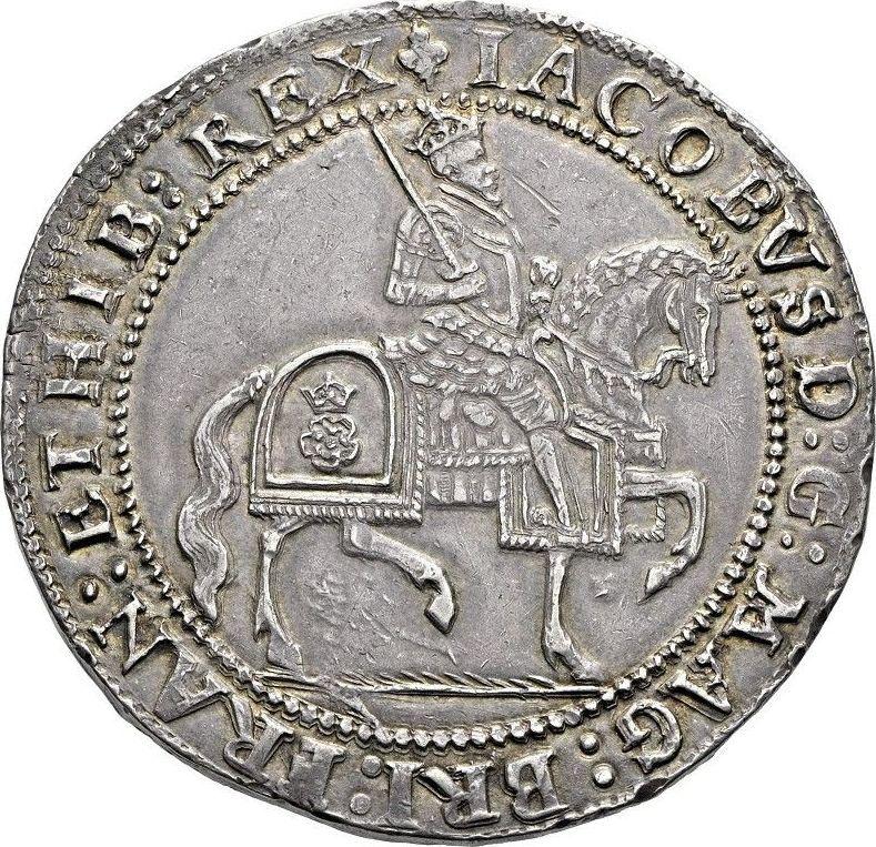 Find out the current coin value of the British Crown no date (1619-1625) "Third coinage". Under the rider, even ground or grass. This undefined coin from the times of James I. Wondering how much a coin like this is worth? The record price belongs to the lot 1053 sold at the Numismatica Ars Classica, Zurich auction for CHF 30,000. Bidding took place December 3, 2024.