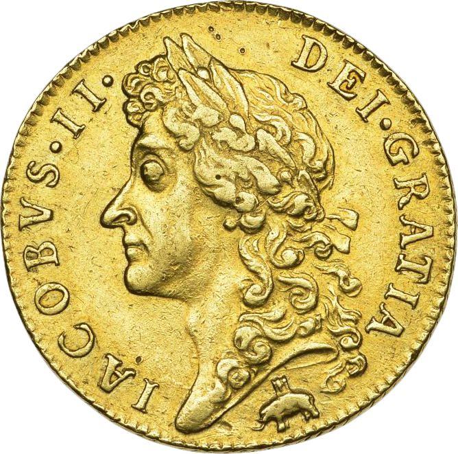 Guinea 1686 "Second laureate head". Elephant and castle (United Kingdom, James II)