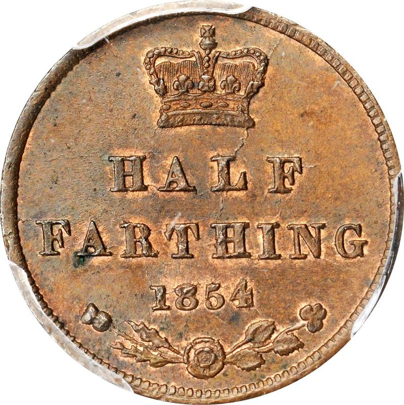 Find out the current coin value of the British Half Farthing 1854 . This copper coin from the times of Victoria. Wondering how much a coin like this is worth? The record price belongs to the lot 64225 sold at the Heritage Auctions auction for USD 390. Bidding took place June 27, 2019.