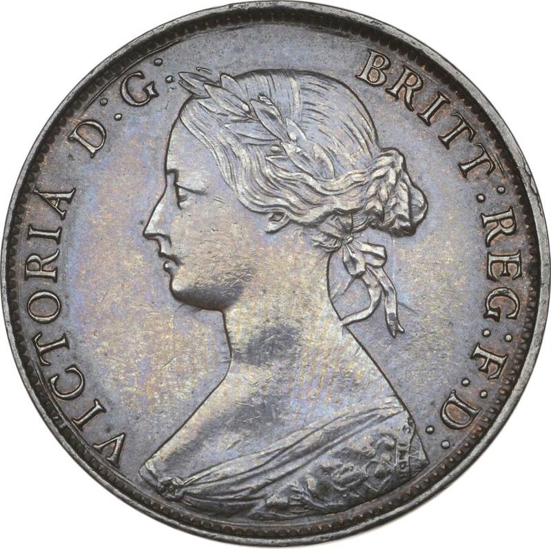 Find out the current coin value of the British Halfpenny 1865 . This bronze coin from the times of Victoria. Wondering how much a coin like this is worth? The record price belongs to the lot 24114 sold at the Heritage Auctions auction for USD 940. Bidding took place September 6, 2012.