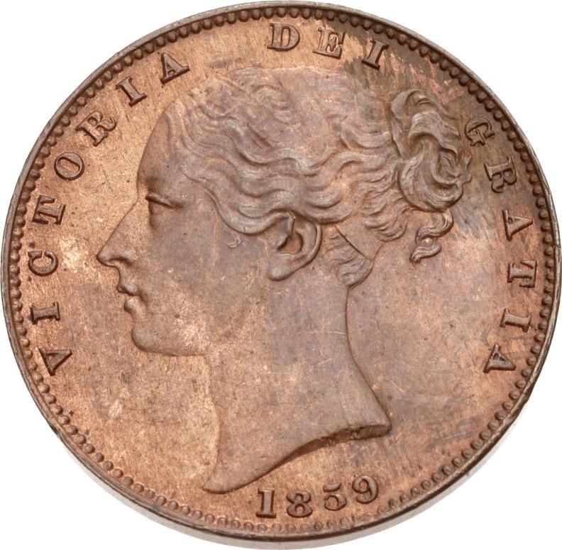 Find out the current coin value of the British Farthing 1859 with mark WW. This copper coin from the times of Victoria. Wondering how much a coin like this is worth? The record price belongs to the lot 1171 sold at the Spink auction for GBP 320. Bidding took place June 22, 2011.