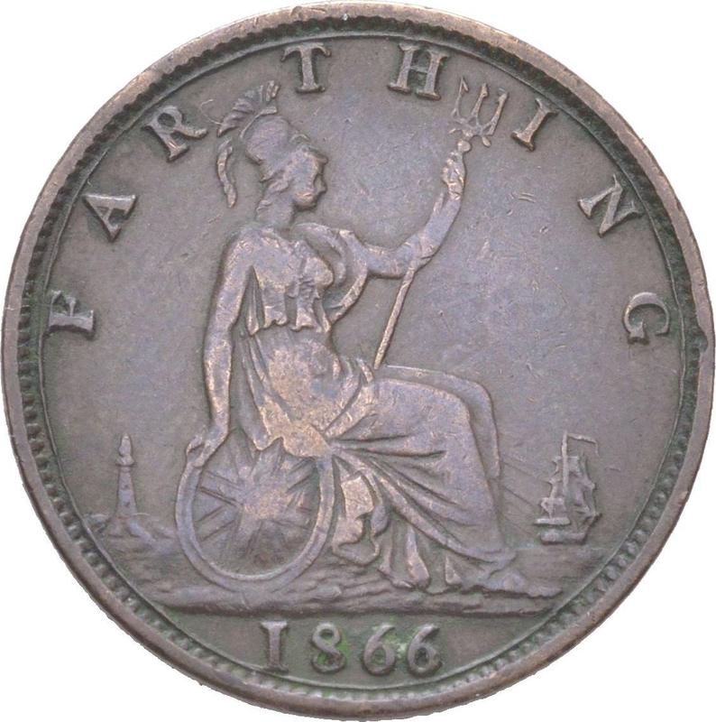 Find out the current coin value of the British Farthing 1866 . This bronze coin from the times of Victoria. Wondering how much a coin like this is worth? The record price belongs to the lot 31056 sold at the Heritage Auctions auction for USD 5,520. Bidding took place April 20, 2018.