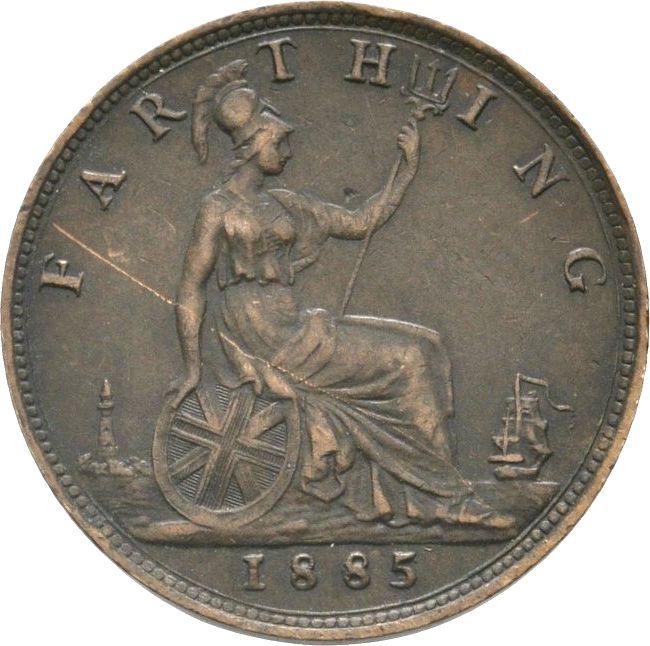 Find out the current coin value of the British Farthing 1885 . This bronze coin from the times of Victoria. Wondering how much a coin like this is worth? The record price belongs to the lot 24313 sold at the Heritage Auctions auction for USD 1,680. Bidding took place December 16, 2024.