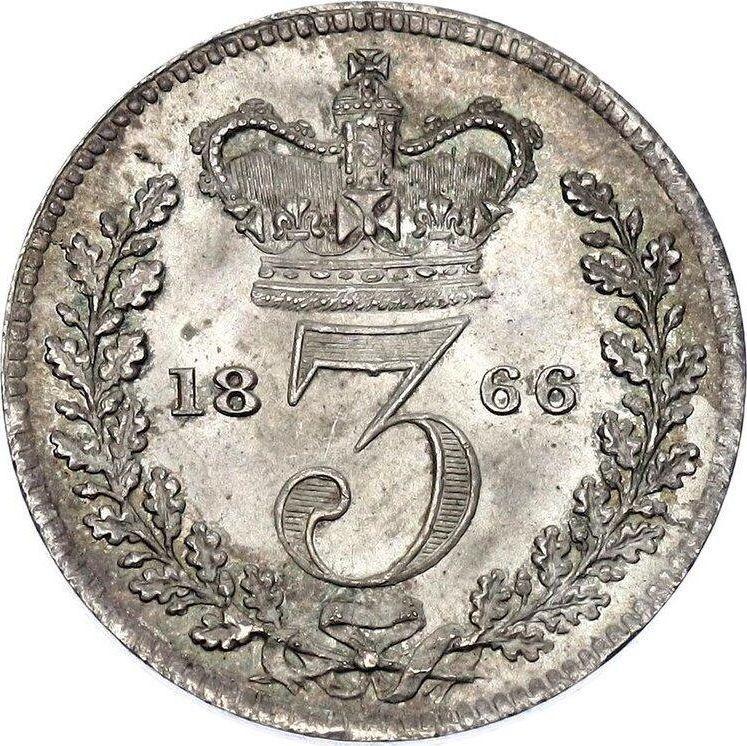 Find out the current coin value of the British Threepence 1866 . This silver coin from the times of Victoria. Wondering how much a coin like this is worth? The record price belongs to the lot 339 sold at the NOONANS auction for GBP 420. Bidding took place April 4, 2023.