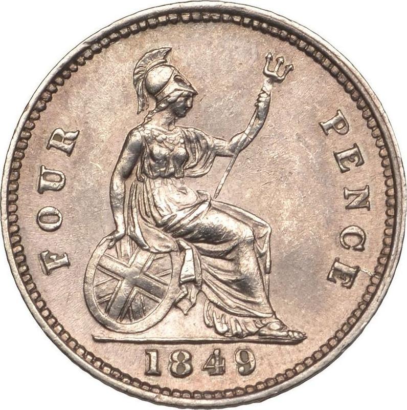 Find out the current coin value of the British Fourpence (Groat) 1849 . This silver coin from the times of Victoria. Wondering how much a coin like this is worth? The record price belongs to the lot 15180 sold at the Heritage Auctions auction for USD 546. Bidding took place January 12, 2004.