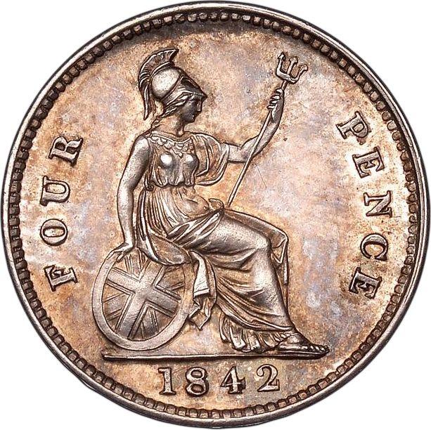 Find out the current coin value of the British Fourpence (Groat) 1837 . Plain edge. This silver coin from the times of Victoria. Wondering how much a coin like this is worth? The record price belongs to the lot 343 sold at the Dix Noonan Webb auction for GBP 1,800. Bidding took place June 14, 2017.