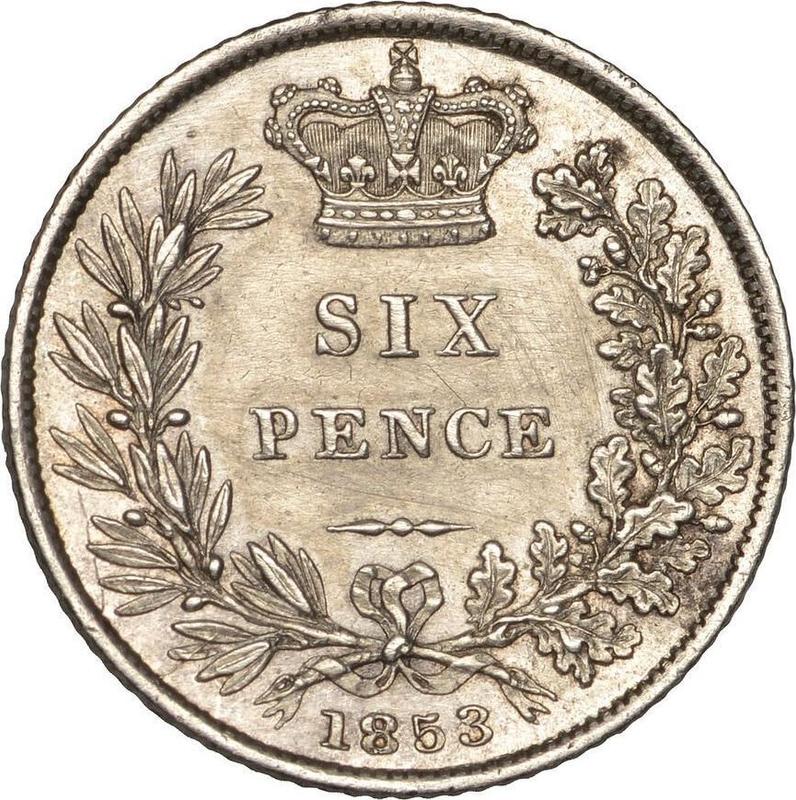 Find out the current coin value of the British Sixpence 1853 . This silver coin from the times of Victoria. Wondering how much a coin like this is worth? The record price belongs to the lot 21143 sold at the Heritage Auctions auction for USD 4,080. Bidding took place March 10, 2025.