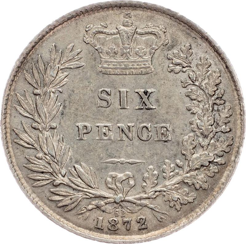 Find out the current coin value of the British Sixpence 1872 . This silver coin from the times of Victoria. Wondering how much a coin like this is worth? The record price belongs to the lot 1159 sold at the Spink auction for GBP 420. Bidding took place June 22, 2011.
