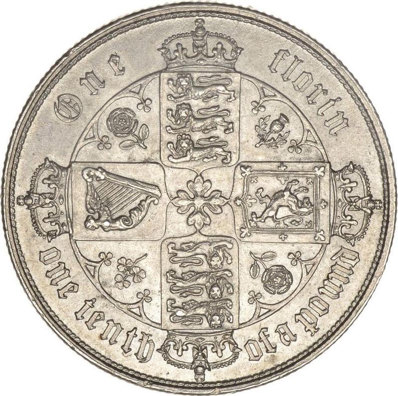 Find out the current coin value of the British Florin 1852 "Gothic" with mark WW. This silver coin from the times of Victoria. Wondering how much a coin like this is worth? The record price belongs to the lot 21 sold at the St James’s Auctions auction for GBP 8,000. Bidding took place February 28, 2024.