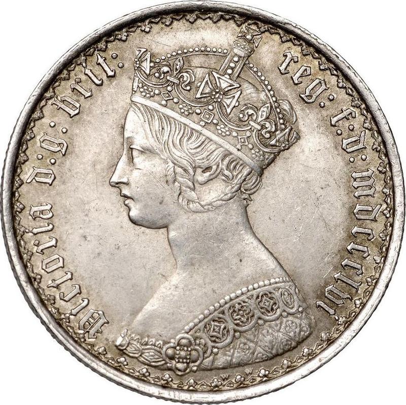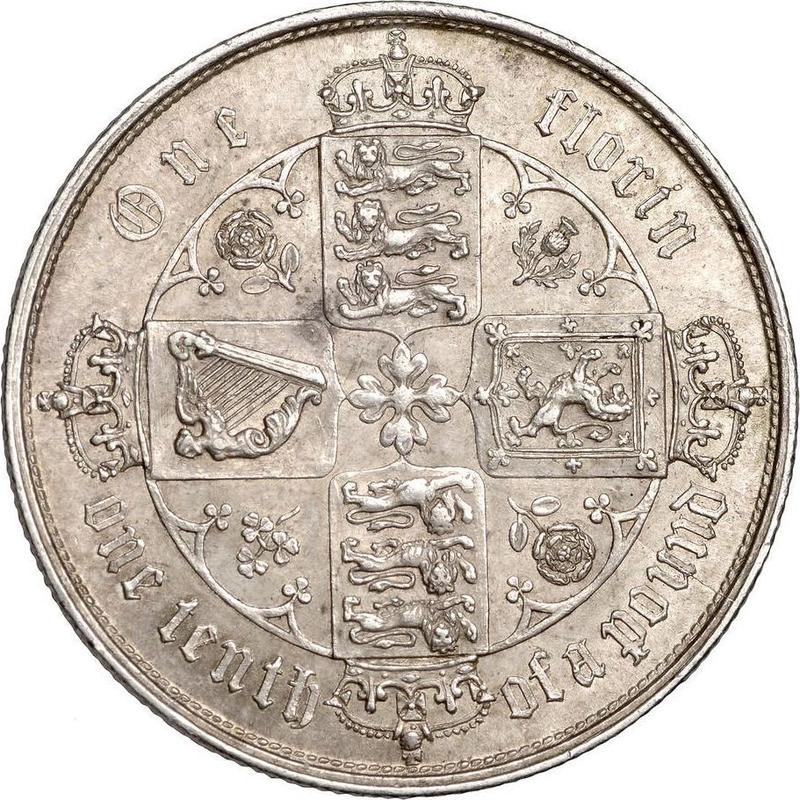 Find out the current coin value of the British Florin 1856 "Gothic" with mark WW. This silver coin from the times of Victoria. Wondering how much a coin like this is worth? The record price belongs to the lot 4390 sold at the Auction World auction for JPY 520,000. Bidding took place October 16, 2021.